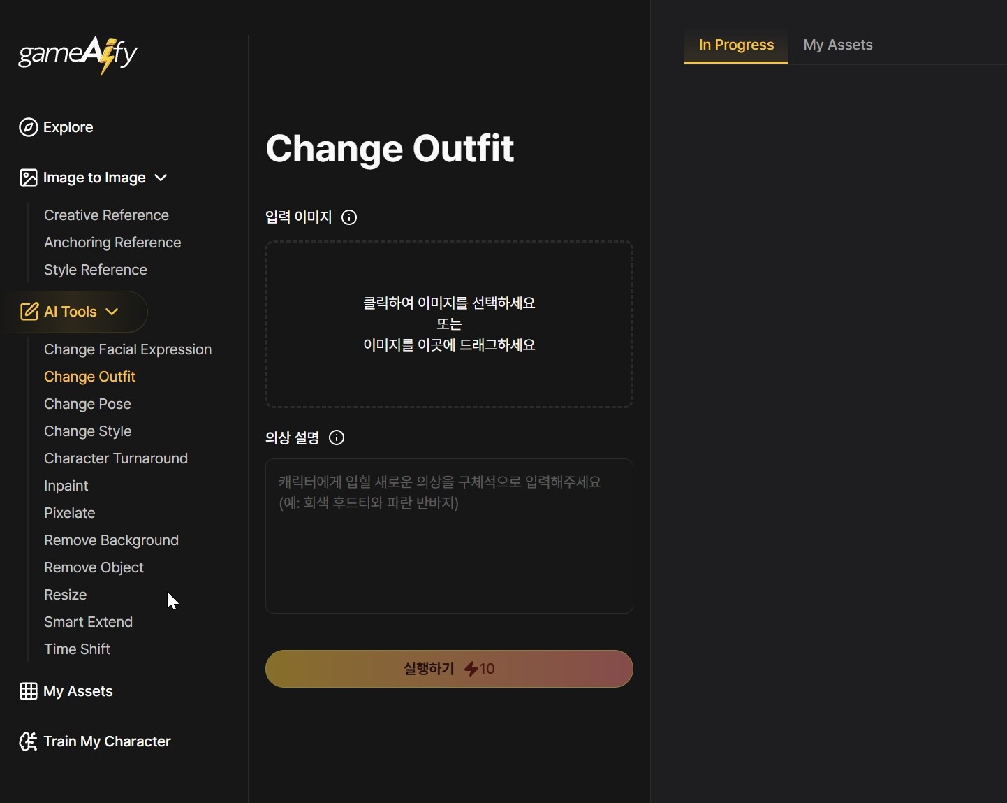 - 의상을 변경할 캐릭터 이미지를 업로드합니다.