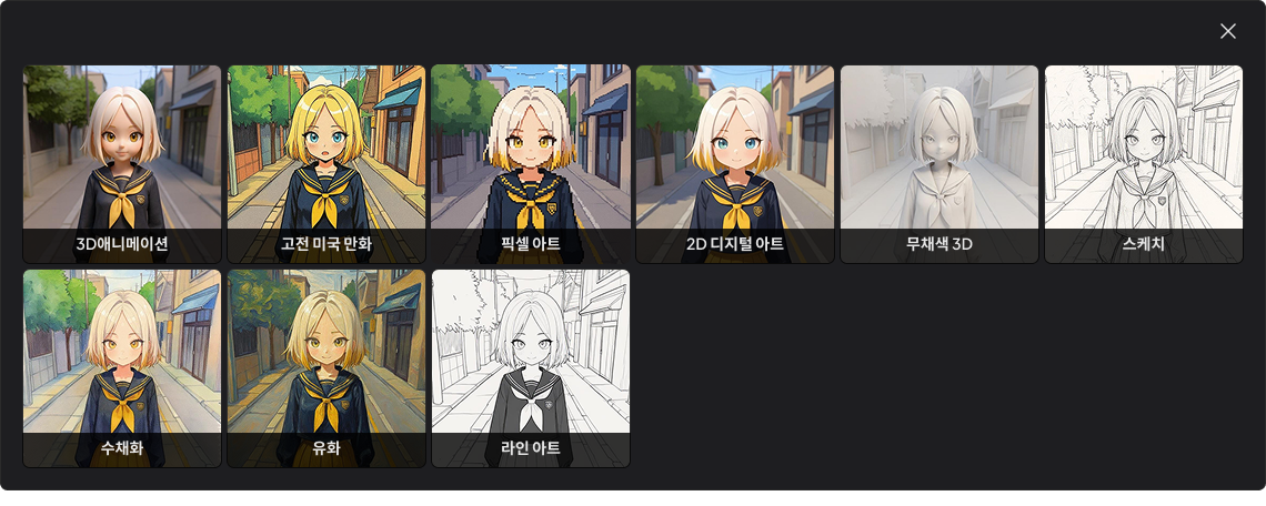 한번의 클릭으로 편리하게 이미지의 화풍을 변환할 수 있는 [Change Style] 기능을 소개해드립니다.