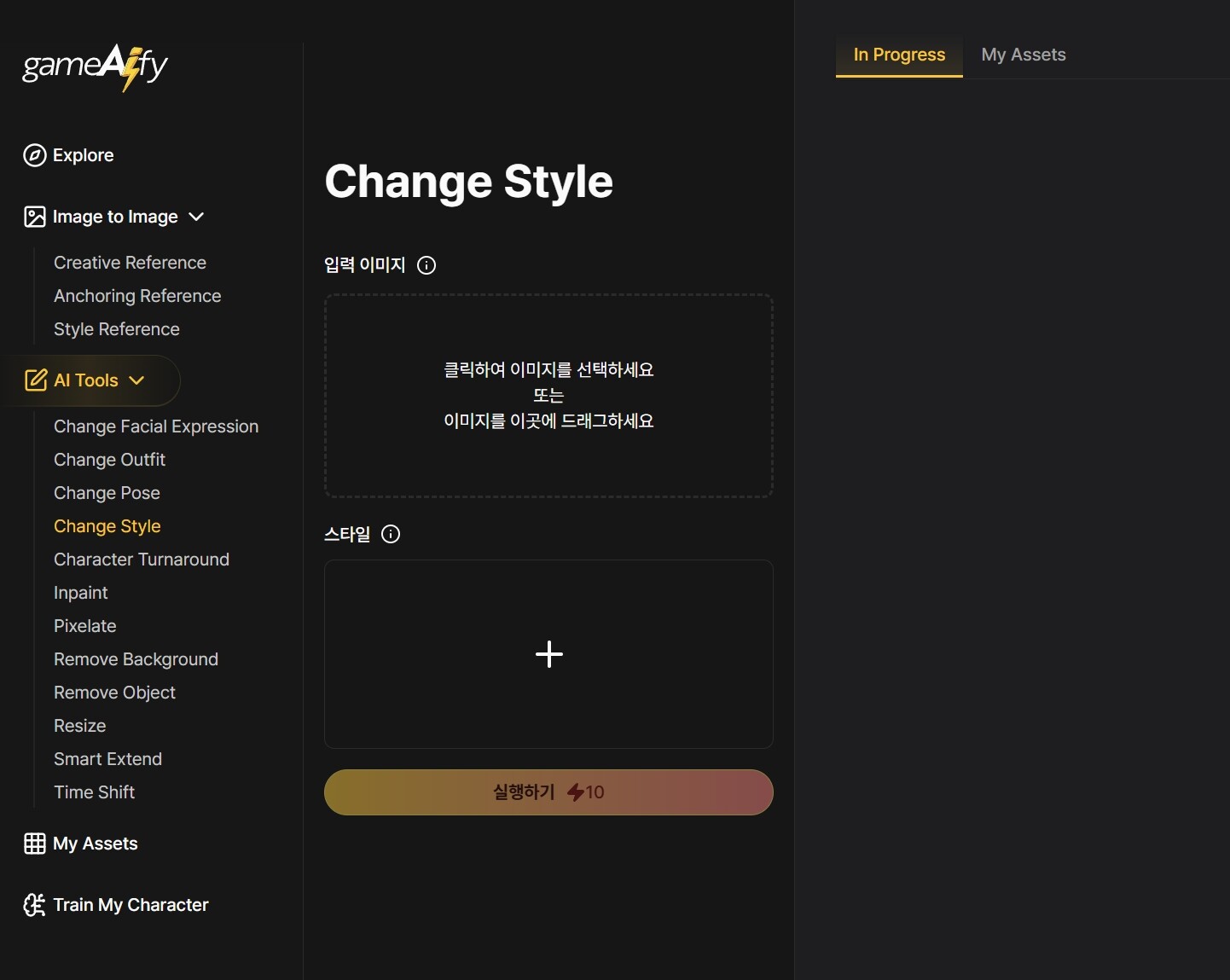 Change Style은 업로드한 이미지를 바탕으로 구성과 형태는 유지하되, 지정한 스타일로 전체적인 화풍과 표현 방식을 변환하는 스타일 전환 도구입니다.