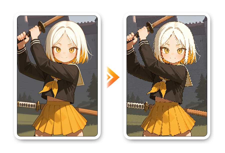 Reduce intricate details and reconstruct them into large pixel blocks—optimizing your images for game assets or pixel-style content creation, so you can easily produce pixel art.